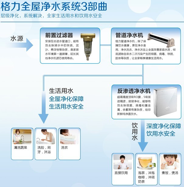 格力凈水機,八大新鮮凈水科技,層層精密過濾,有效濾除水中各種病菌、重金屬等雜質,還原新鮮純凈水,讓您和家人從此遠離水污染,擁抱健康用水生活!