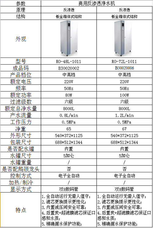 格力牌商用反滲透凈水機是將市政自來水(GB5749)經過6 級濾芯過濾為直飲水的一款產品,有效去除水中懸浮物、鐵銹、余氯、有機物、細菌、重金屬等雜質,出水水質符合中華人民共和國國家衛生部《生活飲用水水質處理器衛生安全與功能評價規范——反滲透處理裝置》(2001)的要求。適用于多種場合,如辦公樓、寫字樓、學校、醫院、酒店、食堂等。